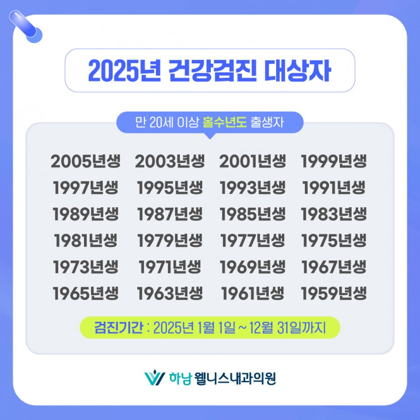 국가건강검진 대상자는 출생연도에 따라 결정됩니다. 홀수년도 출생자는 홀수년도에, 짝수년도 출생자는 짝수년도에 검진을 받게 됩니다. 직장가입자의 경우 사무직은 2년마다, 비사무직은 매년 검진 대상이 됩니다.