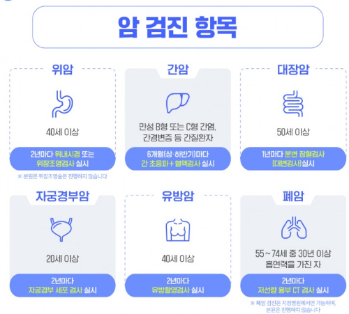 | 만 40세 이상 | 위암 검진(위내시경 또는 위장조영검사) | 2년마다 |