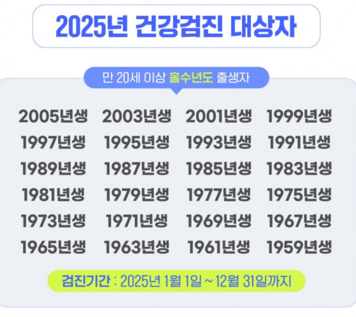 2025년에도 건강검진 신청을 통해 본인과 가족의 건강을 지키시기 바랍니다.