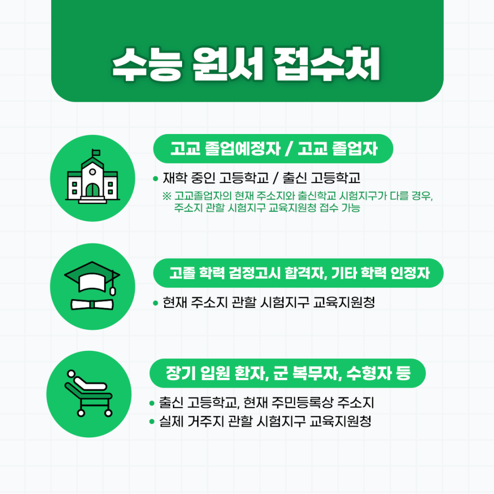 수험생 유형에 따라 수능 원서접수처가 다릅니다: