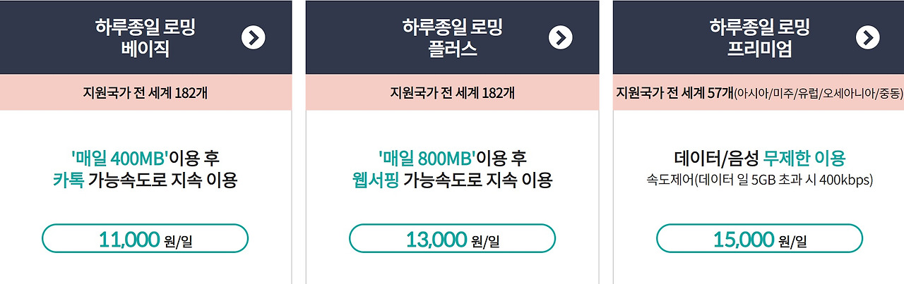• 부가 혜택: 현지 긴급통화 무료, 로밍 고객센터 무료 이용